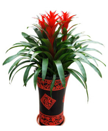 紅星鳳梨,是原產(chǎn)熱帶雨林的多年生草本植物。我國種苗早從荷蘭引進,馴化養(yǎng)殖后走進千家萬戶。 喜水,怕冷,耐旱。在10---40度都可以生存。紅星鳳梨花期較長,花穗奇特艷麗,且可保持數(shù)月之久,故有“世紀盆花”之稱,適宜家庭種植。其葉片翠綠光亮,是一類集觀花,觀葉,觀型于一體的時尚花卉。除盆栽點綴窗臺、陽臺和客廳意外,還可以裝飾小庭院和入口處,常用作在大型插花和畫展的裝飾材料。紅星鳳梨被視為記性新旺的象征,它以其特有的蓮座狀株型,鮮艷的穗狀花序,較長的花期逐漸成為年宵花市場的“寵兒”,也是目前世界上最受歡迎的盆栽之一。紅星鳳梨葉片翠綠光亮,深紅色管狀苞片,色彩艷麗持久,觀賞期長。除盆栽點綴窗臺、陽臺和客廳以外,還可裝飾小庭院和入口處,常用作在大型插花和花展的裝飾材料。